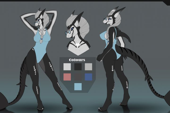 Реф лист персонажа фурри в купальнике, плоский цвет, коммиссия