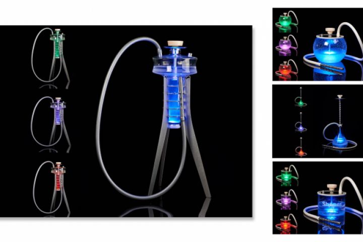 Предметная съемка кальяна Shapes с подсветкой на черном фоне. Фотографии для размещения в каталоге, рекламных буклетах и соцсетях