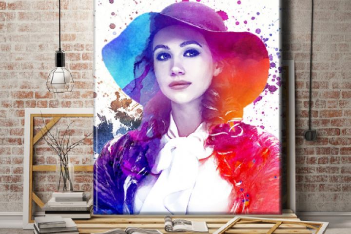 Обработка портерта в стиле Акварель, печать на холсте. Доставка РФ. Самовывоз Москва, Королёв.