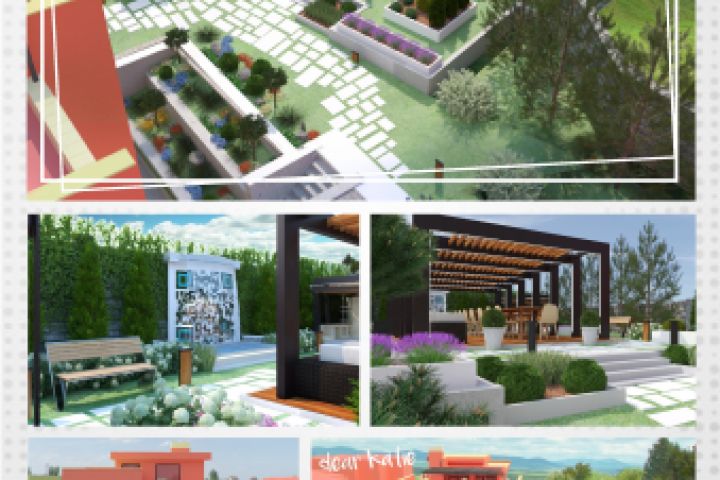 Ландшафтный дизайн с домом в стиле модерн