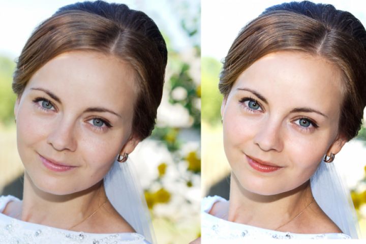 Левое фото блеклое, на правом я подкрасил губки, контрастнее сделал прическу, углубил глаза, чуть кинул загара, забыл уменьшить носик)