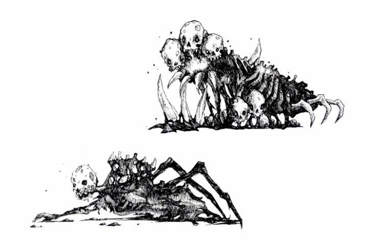 Подборка персонажей - монстры в стиле Dark Fantasy. Традиционная графика (чёрная гелевая ручка)