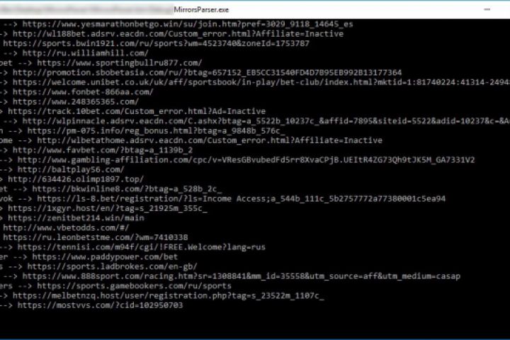 Выполняет сбор зеркал указанных БК с сайта bkinfo. Реализовано получение полной ссылки зеркала из короткой.