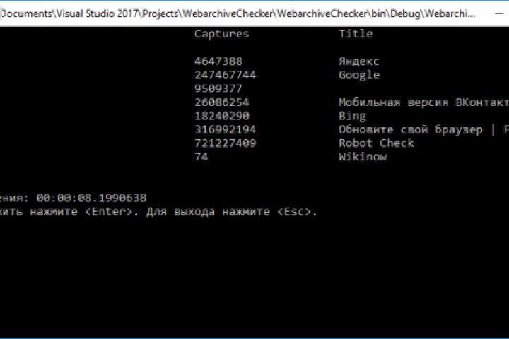 Выполняет парсинг информации о доменных именах с сайта web.archive.org.