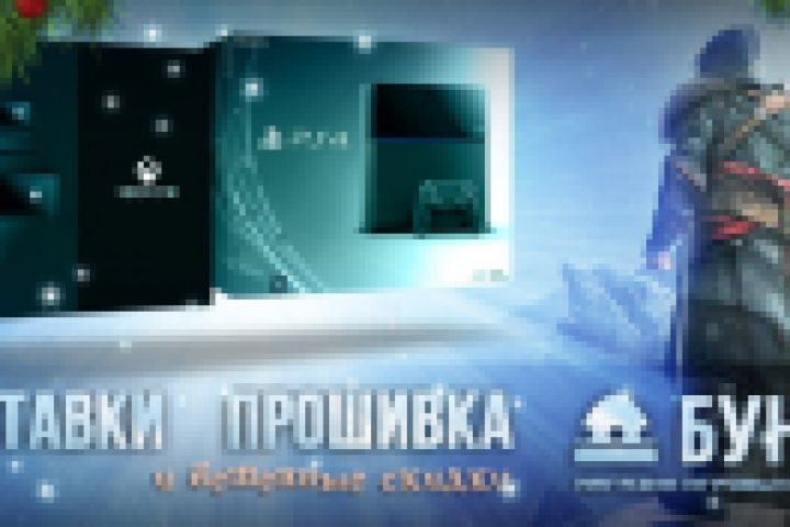 Новогодний баннер магазина игровых приставок stavbunker.ru