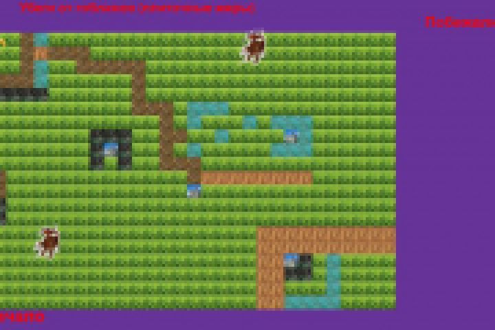 Вашему вниманию представляю свою первую полноценную игру, построенную на базе плиточных миров. Суть игры: Котик должен добежать до Замка. Два гоблина хотят его поймать, от них надо убежать. Детали игры – котик бегает гораздо быстрее гоблинов, но не может пройти через воду и лес, гоблины ходят медленно, но везде. У гоблинов искусственный интеллект, котёнок управляется стрелками с клавиатуры. Гоблины появляются в случайных местах игрового поля, котёнок – только в левом верхнем углу.