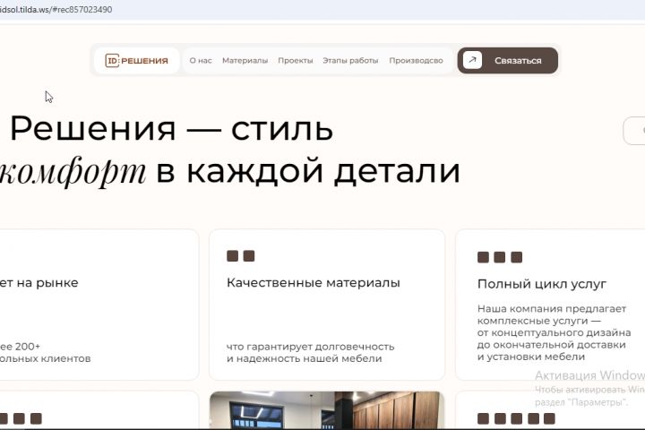 Лендинг для компании по производству мебели по индивидуальным размерам.