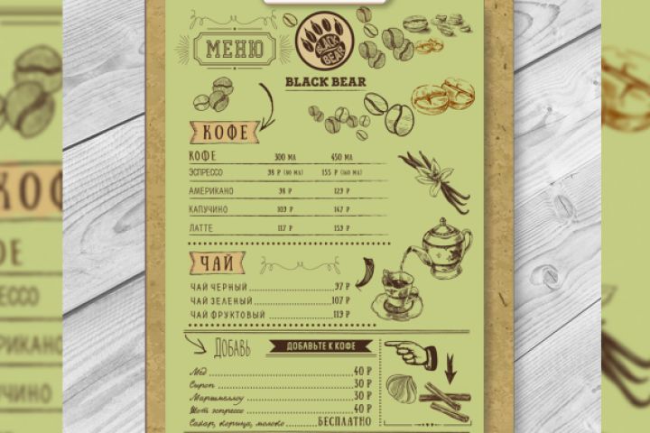 Меню кофейни