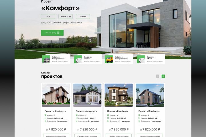 Разработка сайта на Wordpress Woocommerce. На сайте представлены на продажу готовые дома, а также проекты.