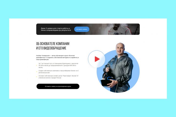 Авторский онлайн-курс по заработку в нише дезинфекции. Сделана разработка Landing-page.