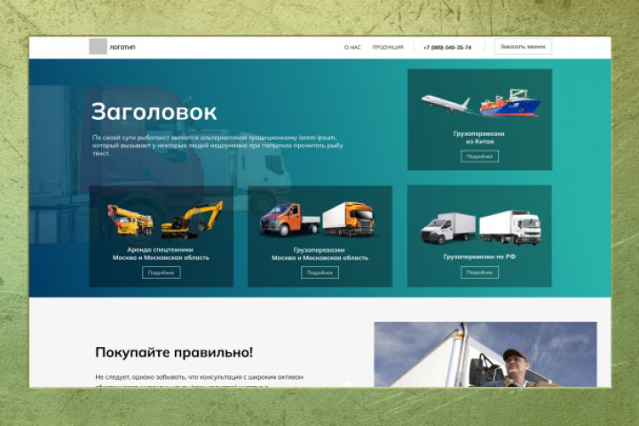 Разработка сайта для фирмы по перевозкам, а также занимающейся сдачей в аренду спецтехники. По нажатию на кнопки услуг выводится прайс. Для мобильности и аккуратности, в мобильной версии прайс выводится через "select"