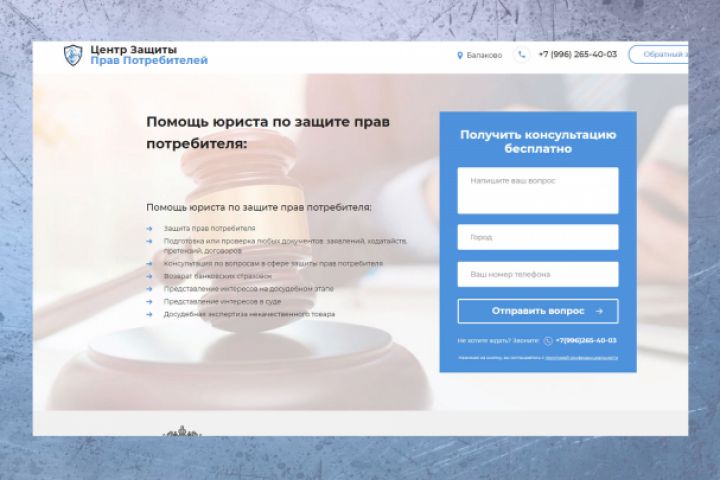 Одностраничный сайт по оказанию юридической помощи гражданам.