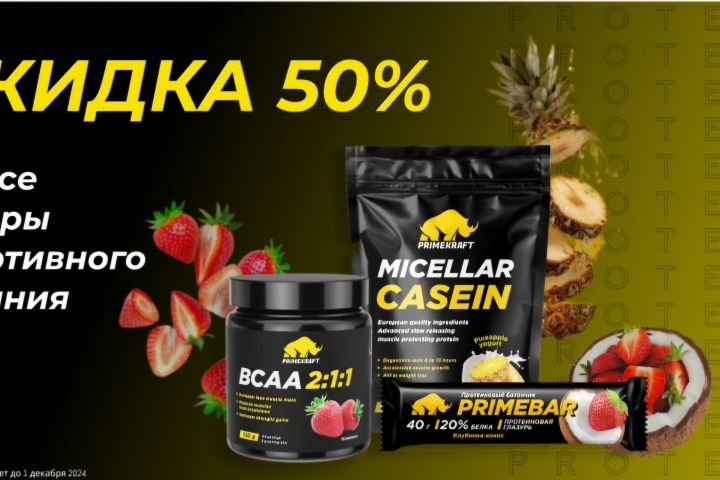 Баннер спортивного питания, скидка 50%
