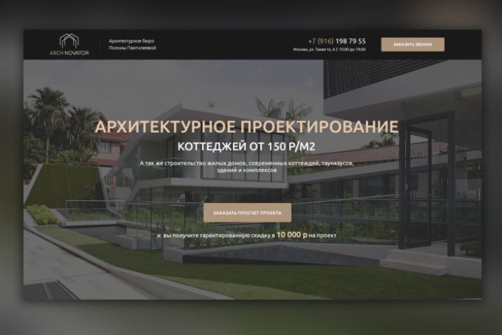 Landing page для Архитектурного проектирование, которое занимается архитектурным проектированием, строительством жылих домов, современных коттеджей , таунтхаусов, зданий и комплексов . Целевая аудитория сайта - обеспеченные женщины и мужчини от 30 лет.