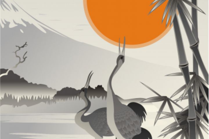 Пейзаж с журавлями_вектор