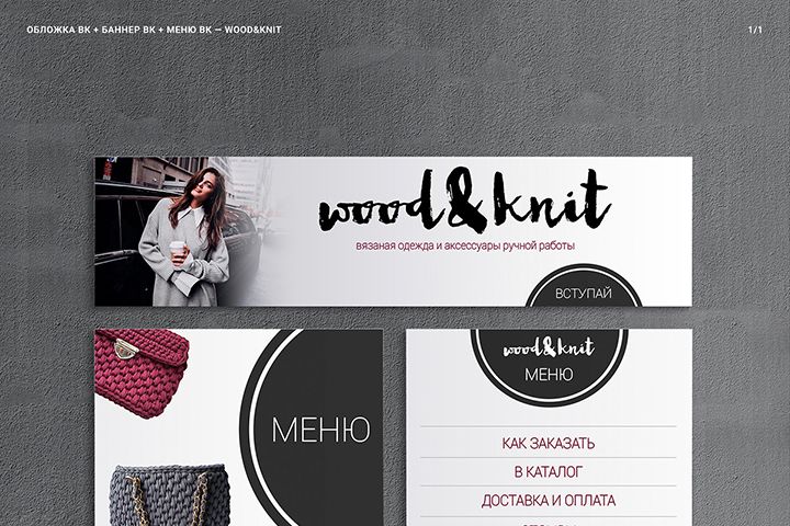 Оформление ВК для магазина вязанных вещей Wood&Knit