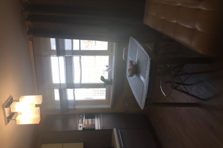 Римские шторы из органзы и плотная двухсторонняя штора с подхватом для декорирования трубы отопления для кухни-столовой