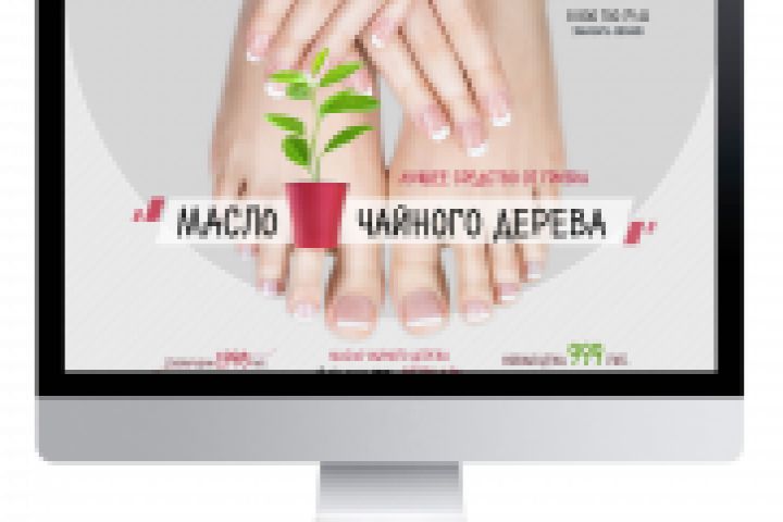 Прорисовка дизайна лендинга для средства от грибка стопы "Масло чайного дерева"