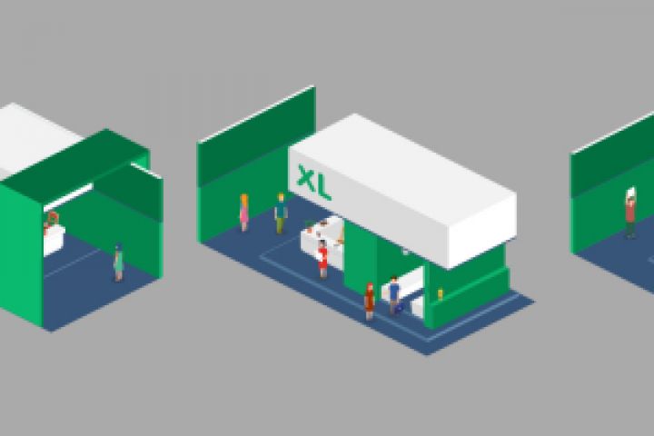 Изометрические иконки выставочных стендов. Вектор.