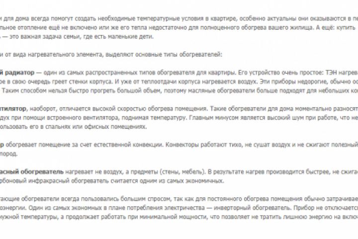Seo-текст описания категории для интернет-магазина: обогреватели