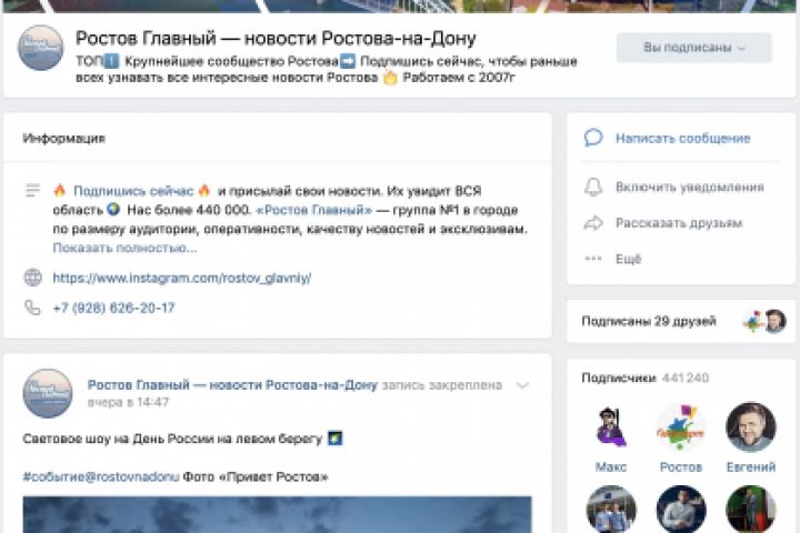 Городской информационный портал. Работа велась с социальными сетями: ВКонтакте: https://vk.com/public36039