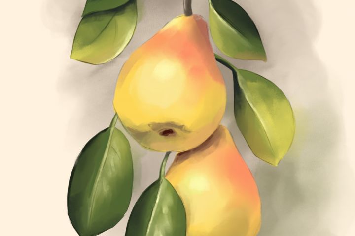 Иллюстрация груши на ветке в технике акварель