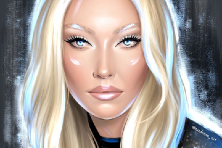 Девушка инопланетянка блондинка портрет с фоном.