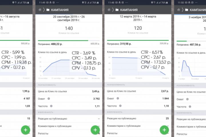 Приведены несколько примеров рекламы в рекламном кабинете Facebook.
