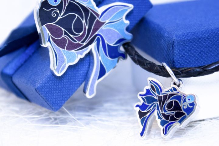 Подвеска "Рыбка". Серебро, перегородчатая эмаль