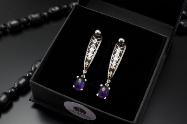 Серьги. Горячая эмаль. Серебро. Аметисты