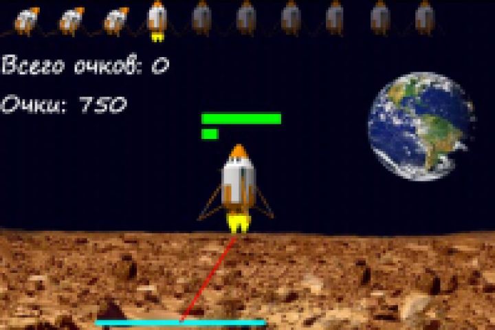 Если полоска соединяющая корабль с посадочной площадкой зеленая значит, космический корабль находится над площадкой и можно садится. Если красная то посадочный модуль необходимо точнее позиционировать над площадкой.