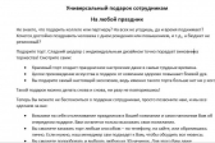 • Возьмем на себя отслеживание праздников в Вашей компании и сами напомним Вам об очередном подарке. Вам останется только высказать свои пожелания.