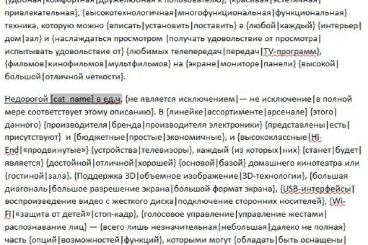 Создание шаблона для рандомизации описаний товаров в каталоге М.Видео