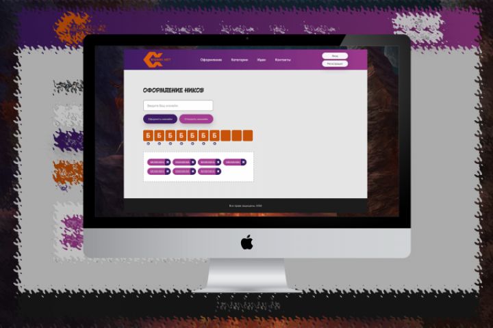 Разработка сайта в для создания красивых ников. Очень интересный проект. Верстка: адаптивная, отзывчивая, кросс-браузерная, кросс-платформенная. Технологии: HTML5, CSS3, Javascript, jQuery