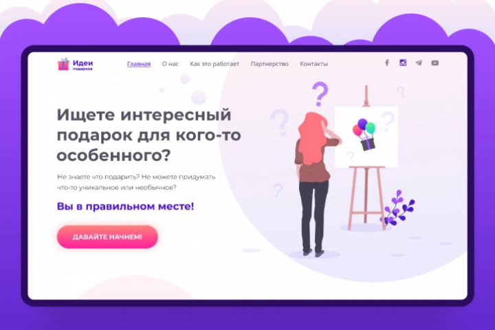 Промо-сайт для компании, которая занимается придумыванием подарков.
