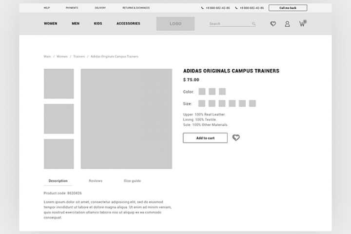 Прототип для страницы товара интернет-магазина.