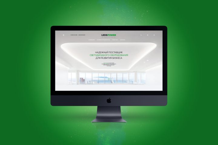 Главная страница сайта для поставщика светодиодного оборудования, выполненная в минималистичном стиле с акцентом на светодиодное освещение.