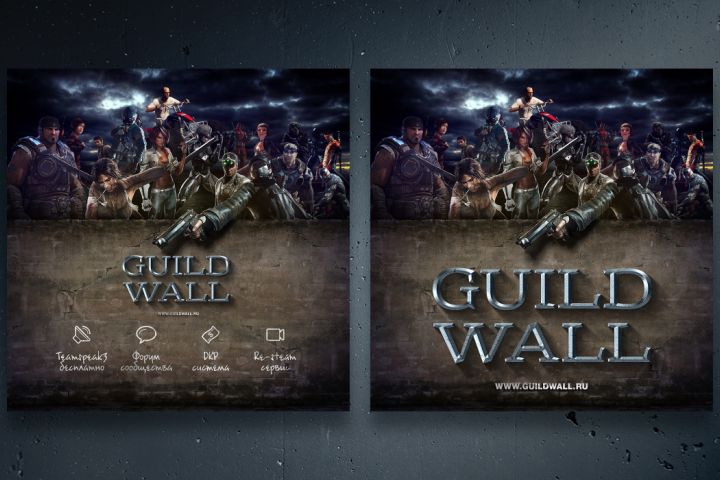 Динамичный веб-сайт для игрового сообщества, демонстрирующий группу разнообразных игровых персонажей и подчеркивающий функции сообщества, такие как бесплатный Teamspeak, форумы сообщества, система DKP и услуги ре-стрима.