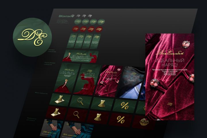 Брендированные элементы и посты для сообщества в социальной сети "ВКонтакте", посвященные модной одежде и аксессуарам.