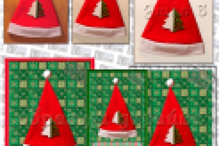 1-й этап – фотосъёмка основного объекта: новогоднего колпака с приколотой иголкой на него украшения в форме ёлки. Колпак за кончик держался ассистентом; освещение в один источник.