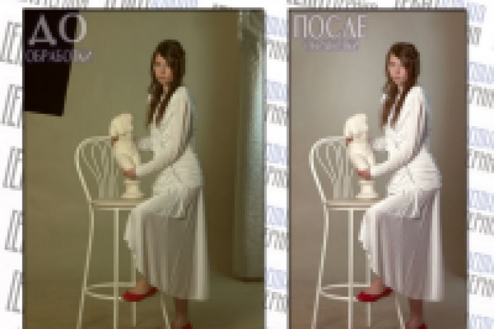 Кадрирование, цветокоррекция, коррекция лица, причёски и фигуры, создание светового пятна за моделью.