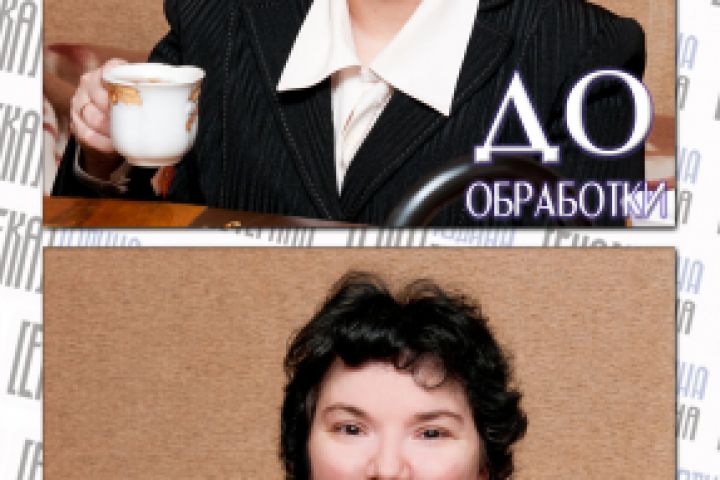Во время обработки на этом фото я вытянула провалы в тенях - сделала более светлыми волосы и пиджак. Отчистила от прыщиков и неровностей лицо. Сделала Ирине небольшую подтяжку и убрала жирный блеск.
