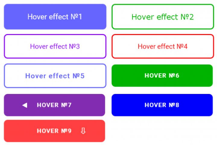 Примеры созданных на CSS hover-эффектов для кнопок. Так как данный ресурс не позволяет загружать видео, то сами эффекты смотрите в видеофайле, указанном в ссылке