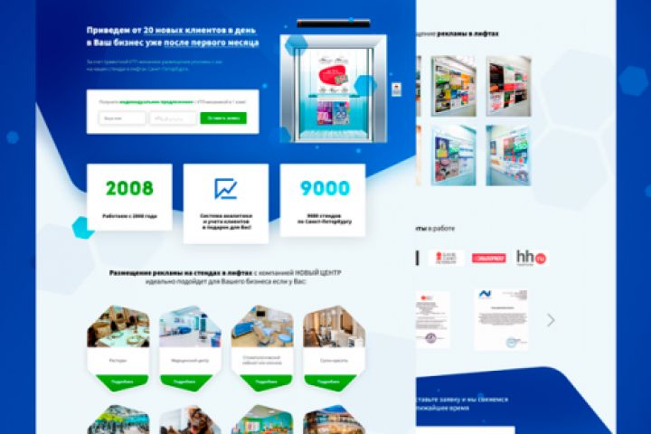 Разработка дизайна для компании по услугам рекламы в лифтах.