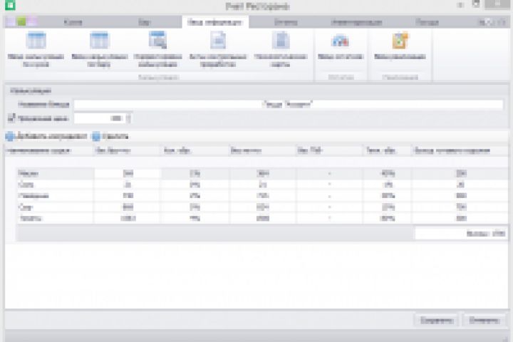 - ввод и изменение калькуляций по блюдам