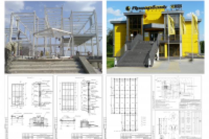 Разработка проекта витражей из системы профилей «HUECK» (Германия). Стоечно-ригельный фасад с креплением к несущему металлокаркасу и примыканием к стеновым сендвичпанелям. Стадии КМ и КМД на основании геодезической съемки и чертежей АР.