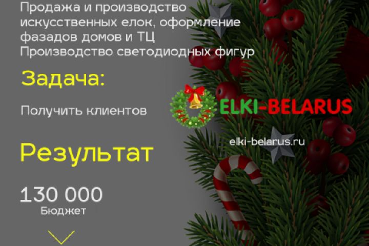 Цель: Получить клиентов Бюджет : 130 000 рублей/месяц Результат: 1). 4390 перехода 2). 160 заявок Выручка: ~3 000 000 рублей