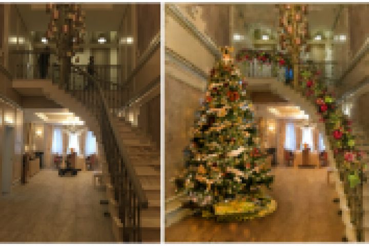 рисунок интерьера с праздничными украшениями