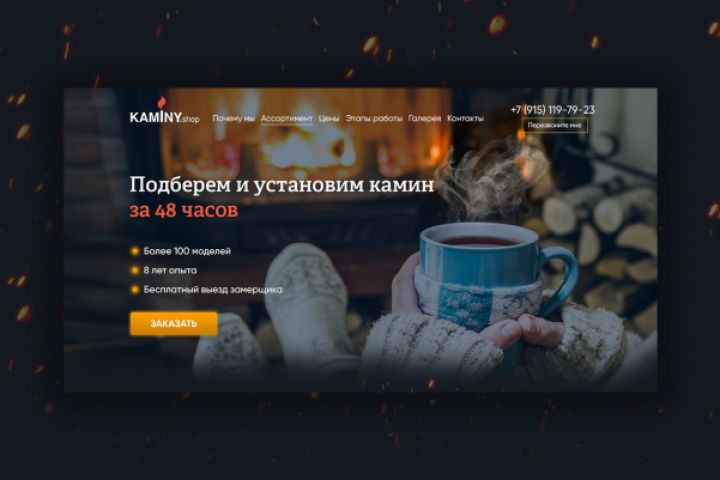В разработке дизайна использовал темные оттенки. На всем лендинг выдерживал внимание на теплоте и уюте. Шрифты используемые в работе: Adelle Cyrillic Gilroy