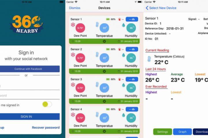 Приложение позволяет загружать инфомрацию с датчиков снимающих влажность, давление и прочие данные, можно просматривать графики изменения температуры/давления. Создавать алерты срабатывающие при достижении определенных показателей.